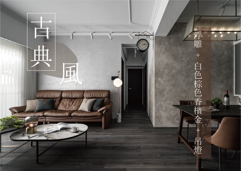 新古典風較為簡潔有力,利用低調素雅線條、成熟穩重的配色