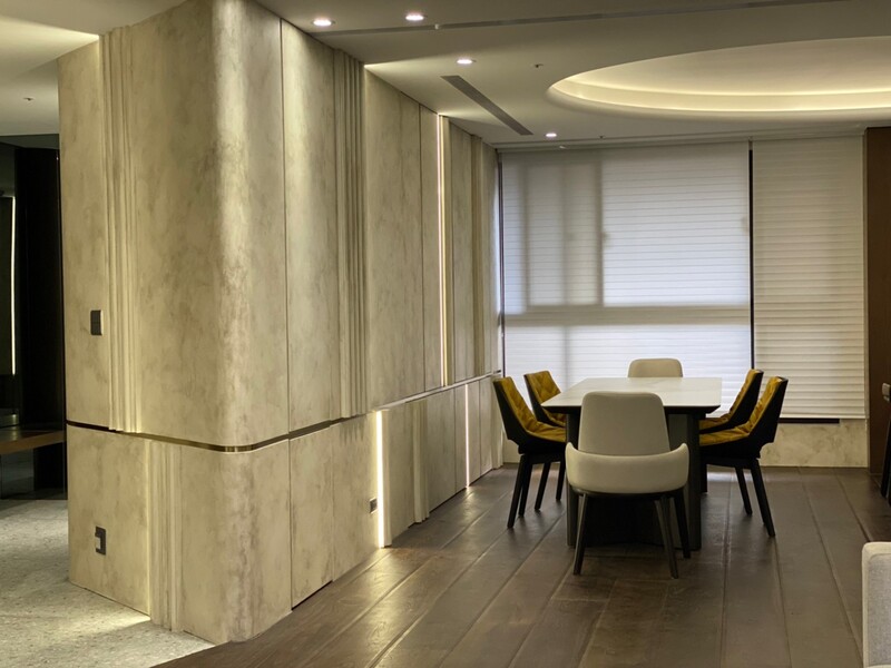 沒有多餘高彩度的裝飾,搭上浮誇的吊燈以及藝術牆面浮雕,完完全全將古典風格襯托出來